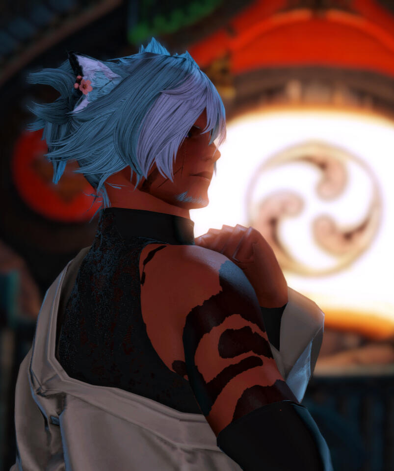 Blue is a born La Noscean native. He does have mild to severe aether sickness that is affected wildly from the ambient Aether that surrounds him in everyday life. Being so sensitive it also tends to make him susceptible to being tempered. For this, he isn't allowed on missions to fight Primals.Lil'Blue (Blue to most) is a name given to him by Jacke. The name was awarded thehighly feral and sickly miqo'te early in Jackes care.Befriending Blue is a long and severely tedious process much like domsticating / befriending a feral stray. The definition of a Slow Burn.Blues journeys have left him scarred and beaten. Partial vision loss and nerve damage being some of the most prominent, both afflictions stemming partially from his severe sensitivity to Aether from the First that overwhelmed his already physically and mentally weak body.There is a lot that can set Blue into a spiral mentally but they are easy to avoid (once they're learned). In typical cat fashion most discomforts are hidden leading to an eventual large and violent outburst.